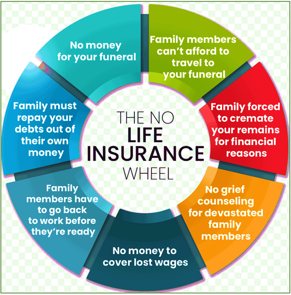 First of all, it’s colorful and visually compelling. It looks like a child’s toy. Like a child’s game. On purpose. Doesn’t it? It looks challenging and fun and the way to beat it is to buy in. It’s the safest way to win the game. But there are a number of assumptions presented on that colorful Wheel of No Life Insurance.