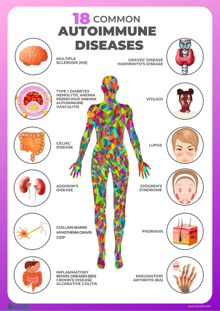 Autoimmune disorders are conditions when your body’s immune system, i.e. antibodies, attack healthy portions of your body. There are lots of autoimmune disorders available. Over 100 to pick from. Ya. I know. You’re not supposed to end a sentence with a preposition. Ending a paragraph with one is worse, so I wrote this meaningless addition.