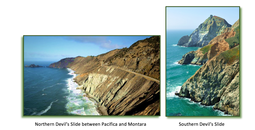 However, more cars fly over the cliffs, accidentally, than get swept away from mudslides. One father, and then 20 years later, his son, each plunged their cars off Devil’s Slide, at the same exit point, landing, pancaked, upside-down, on the rocks far, far below. Both died. Although rarely, on occasion, a death-defying victim miraculously crawls out of their metal pancake, leaving it destroyed on the rocks at the bottom, and attempts to scale back up the cliff, even with fractured bones, and a salt-water wallet.